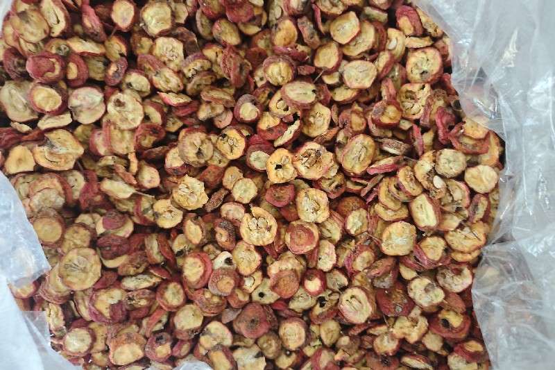 今日行情,山东省临沂市平邑县,山楂中心圈32元左右颜色鲜艳,山楂圈电商货15元/公斤,投料规格3.5元左右/公斤:统货4元左右,地炕货5元左右,统片5元左右, 优质晒片6元左右;饮片烘干:有籽货7.5元左右,无籽精选货17.5元左右,甜红子7.5元左右。(颜色鲜艳甜红子产新中)。