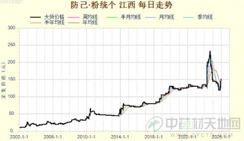时间进入到2026年1月份,总的来说,防己在产新走出了一波引人注目的上涨走势,虽2025年野生新货产量减少,但当前野生货与家种货以及当前库存足以满足市场需求,其短期内还需继续消化库存,至于防己能否继续迎来高升,接下来行情走向需重点关注三大核心关键因素:一是集采落地后防己需求端的实际释放情况;二是产地走动情况和市场货源的实际消化进度;三是看人气。