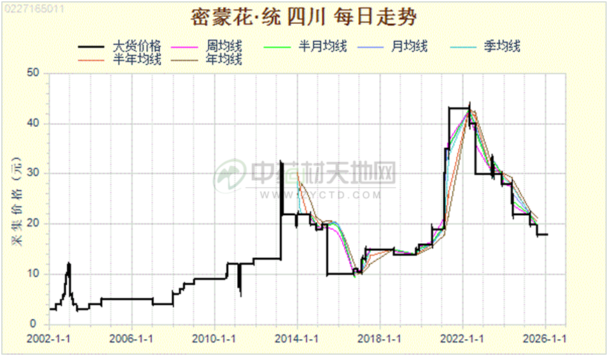 上图为:密蒙花历史行情趋势图