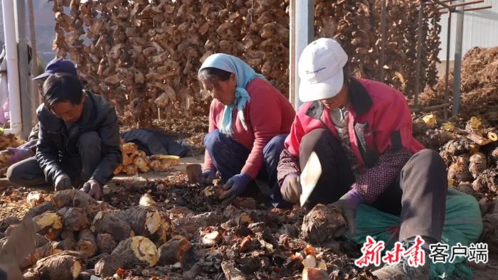 工人正在分拣大黄。图片均由新甘肃·甘肃日报通讯员 王锁彦摄