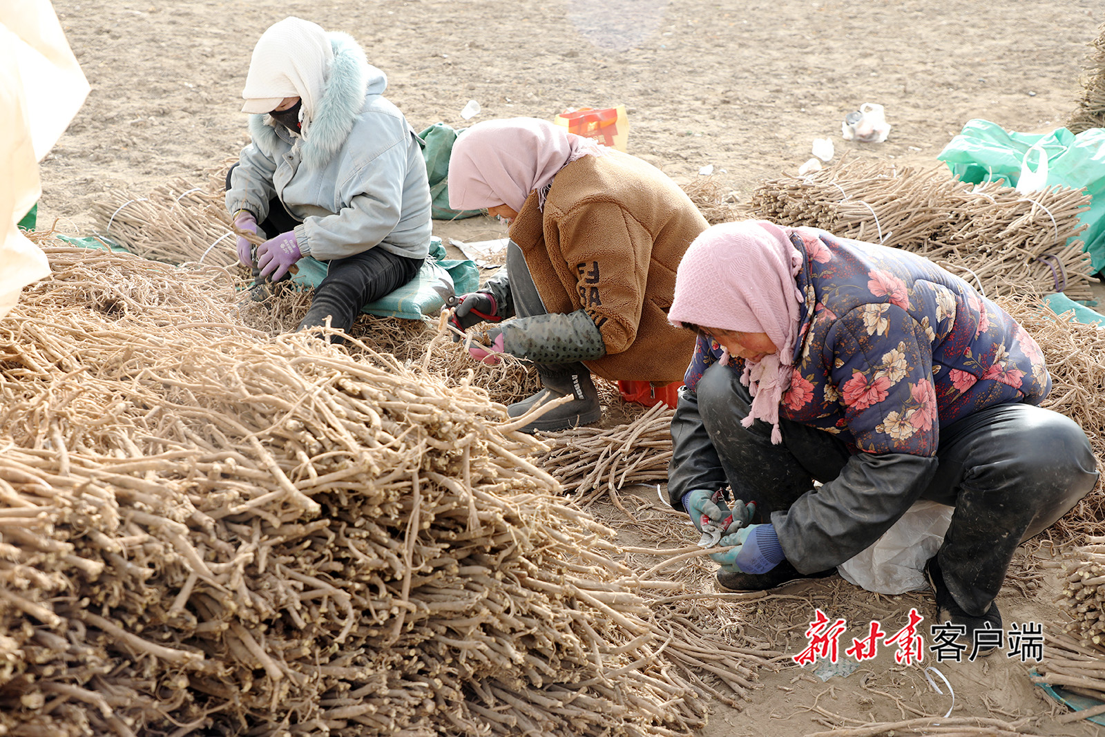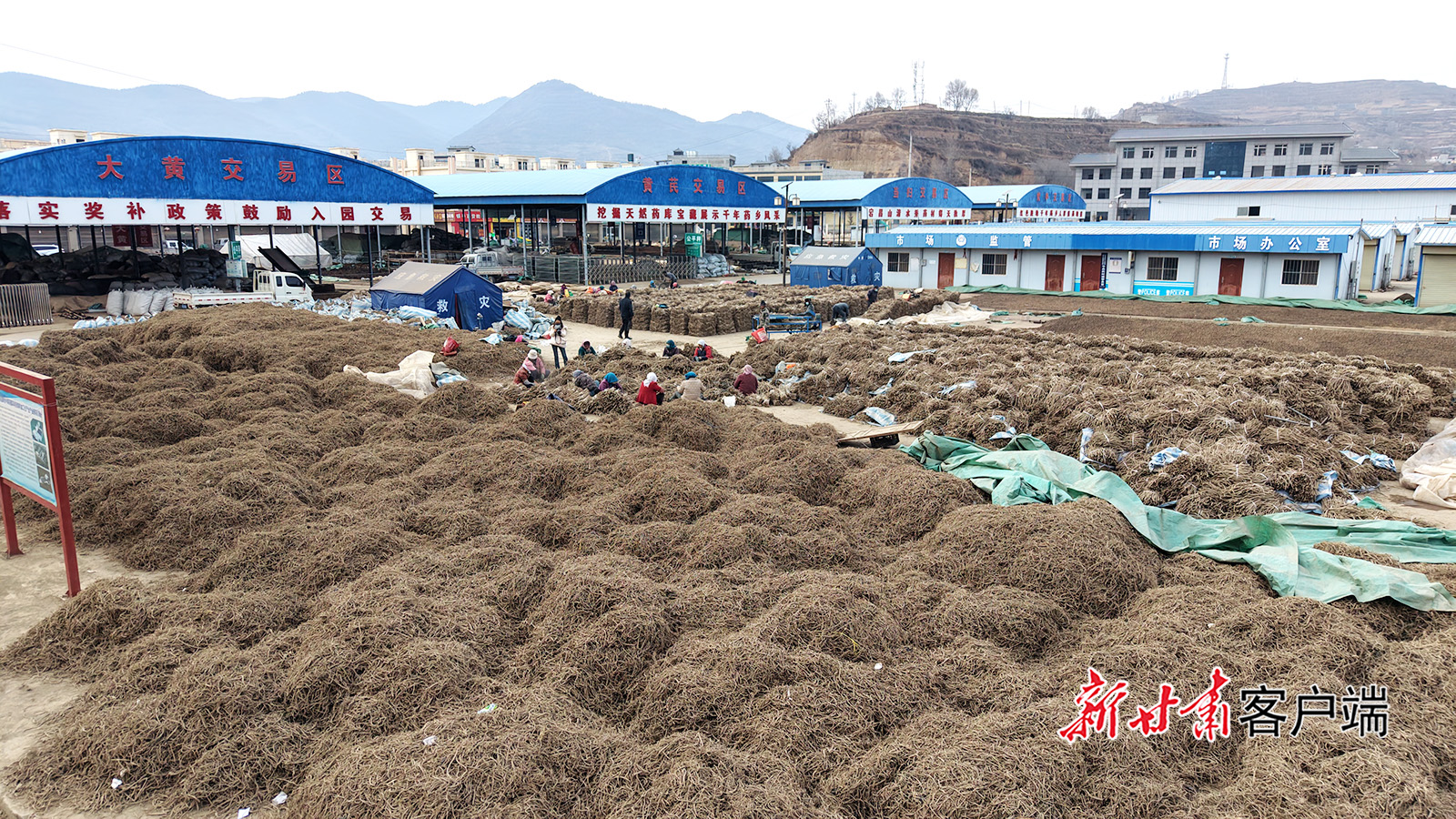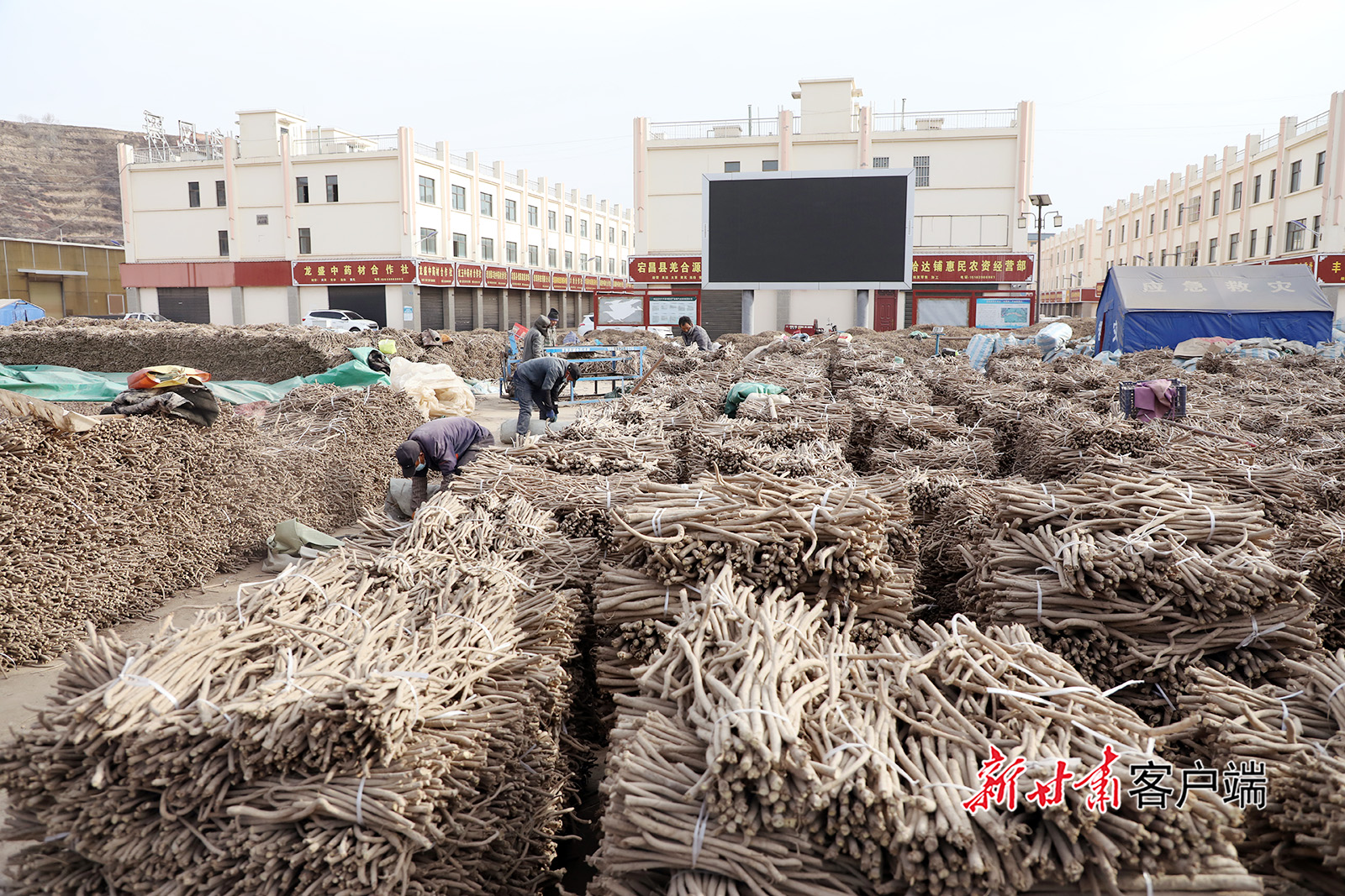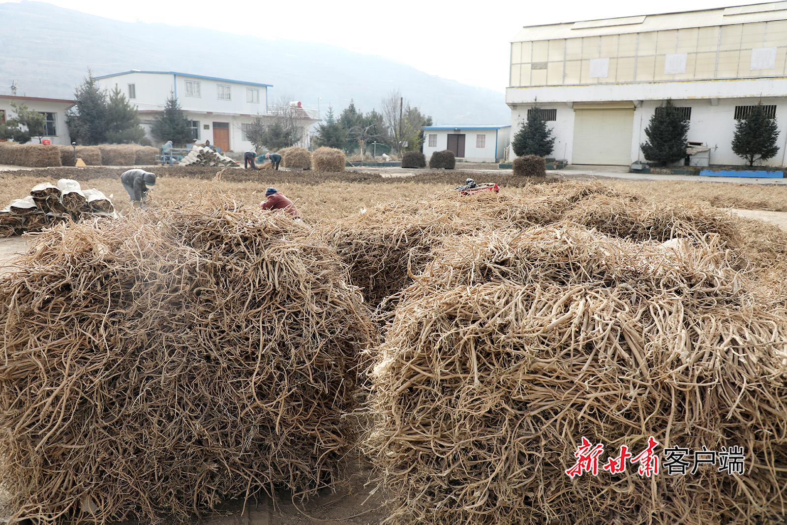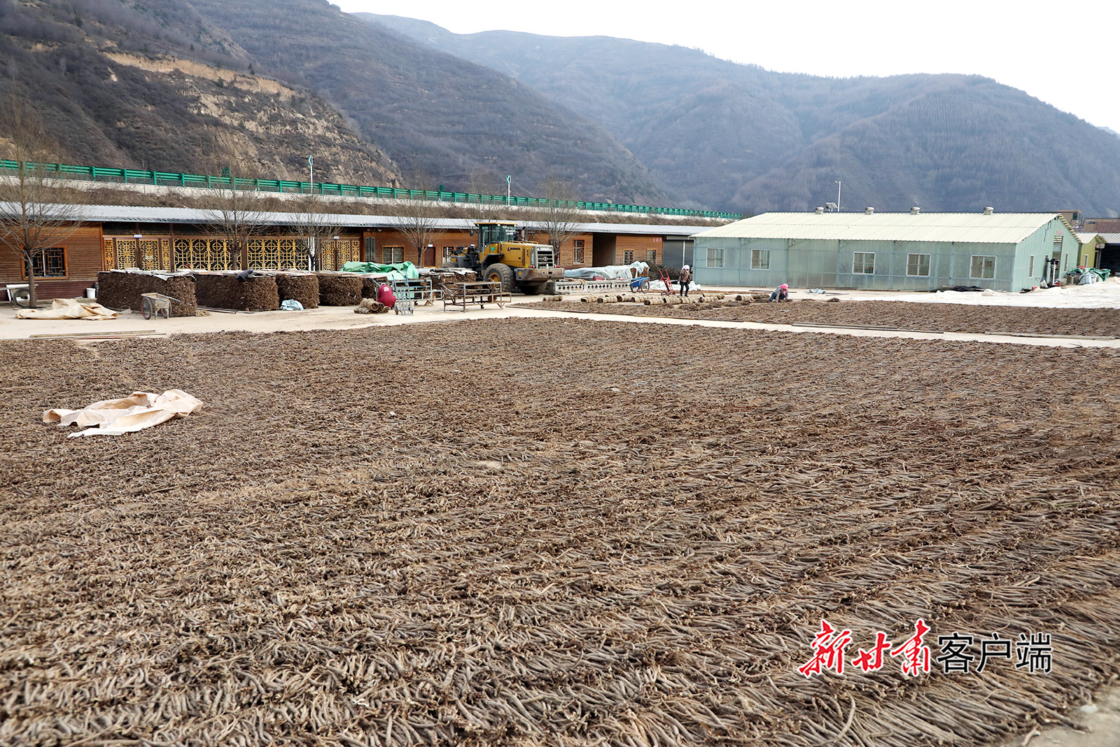 12月22日,宕昌县北部乡镇药材加工企业、专业合作社车间,村民忙着加工晾晒当归、党参、大黄等道地药材。
