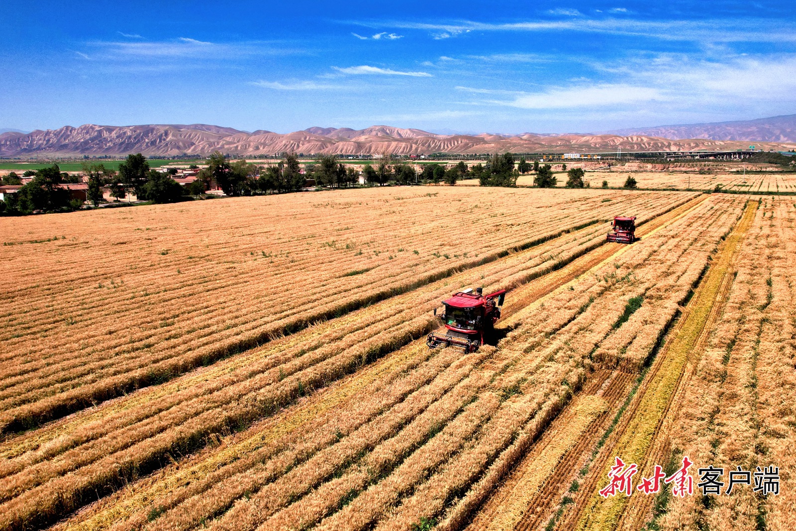 古浪县泗水镇上四坝村小麦收割现场。资料图,新甘肃·甘肃日报记者 金奉乾摄