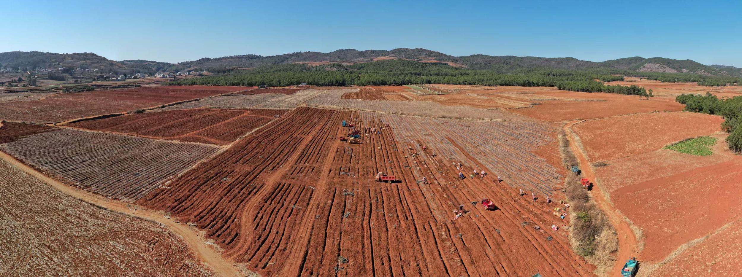 眼下,正值山药成熟采收的时节。在云南省曲靖市沾益区播乐乡的田野间,工人们正忙着采收、分拣、搬运山药;田垄上,一根根粗壮圆润的山药整齐摆放。临近春节,这批新鲜的山药迎来销售旺季,成为助力当地群众增收的“香饽饽”。
