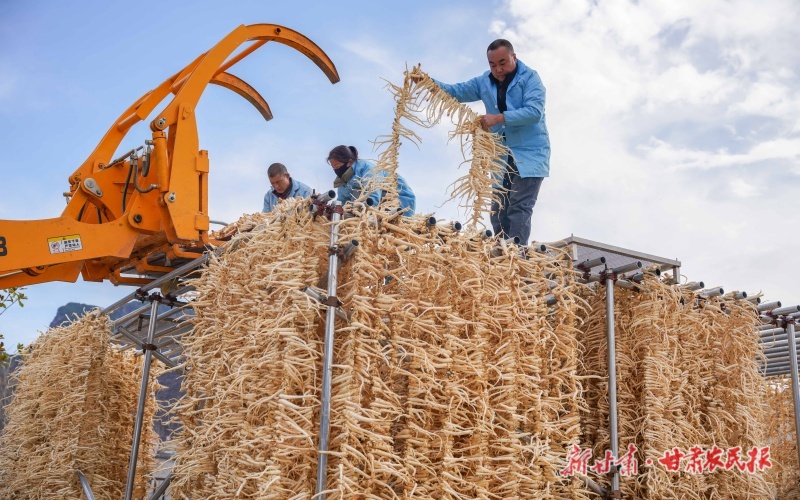 工人晾晒初加工的中药材桔梗。新甘肃·甘肃农民报通讯员 陈争强 摄