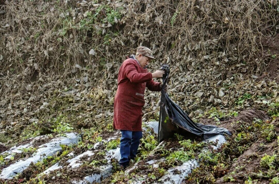 依托这条产业链,田间采收流程高效有序:新挖丹参的部分优质根茎被选出留作种苗,大部分则随即装袋,直接送往德阳中江县的加工厂进行干燥与深加工,使用过的农膜,也将统一回收处理。
