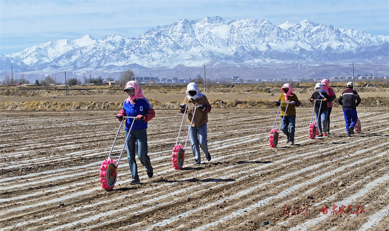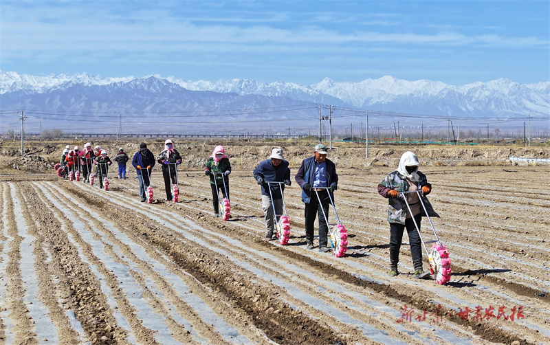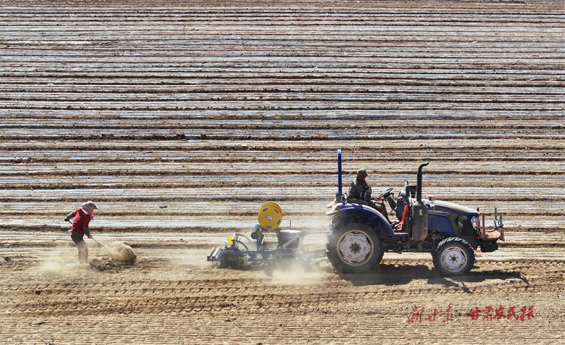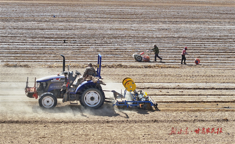 新甘肃客户端讯(新甘肃·甘肃农民报通讯员王晓泾 张旭东 文/图)近日,在民乐县民联镇千亩茴香种植基地,拖拉机牵引着滴灌覆膜一体机在农田里来回作业,村民们正在用点播器点播茴香,一派春耕的繁忙景象。
