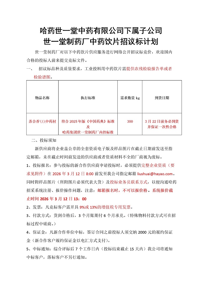 作者:哈药世一堂药厂
