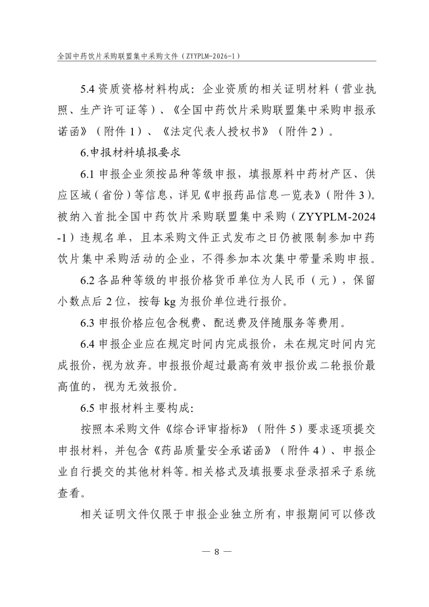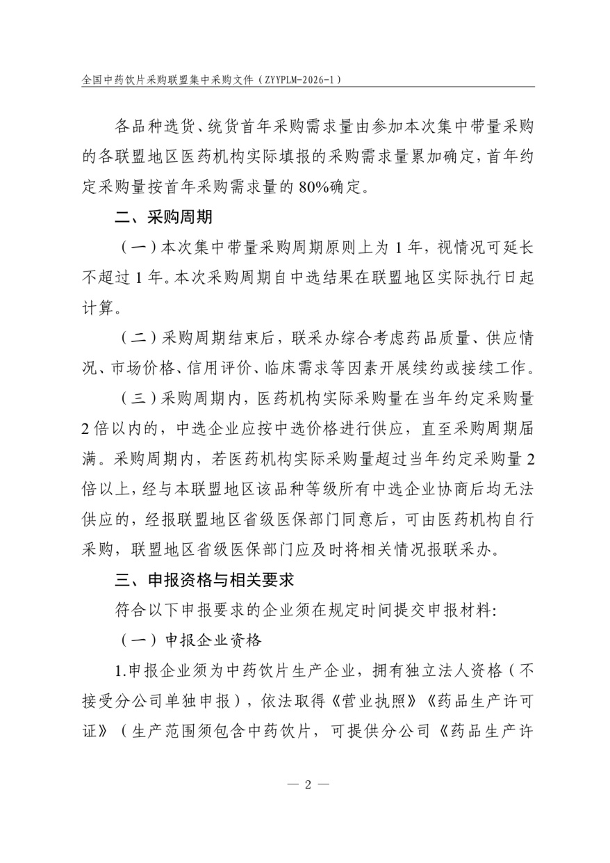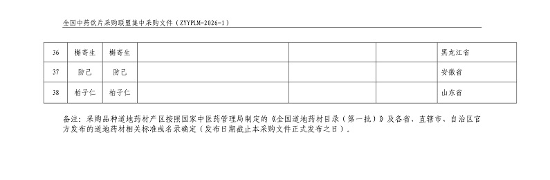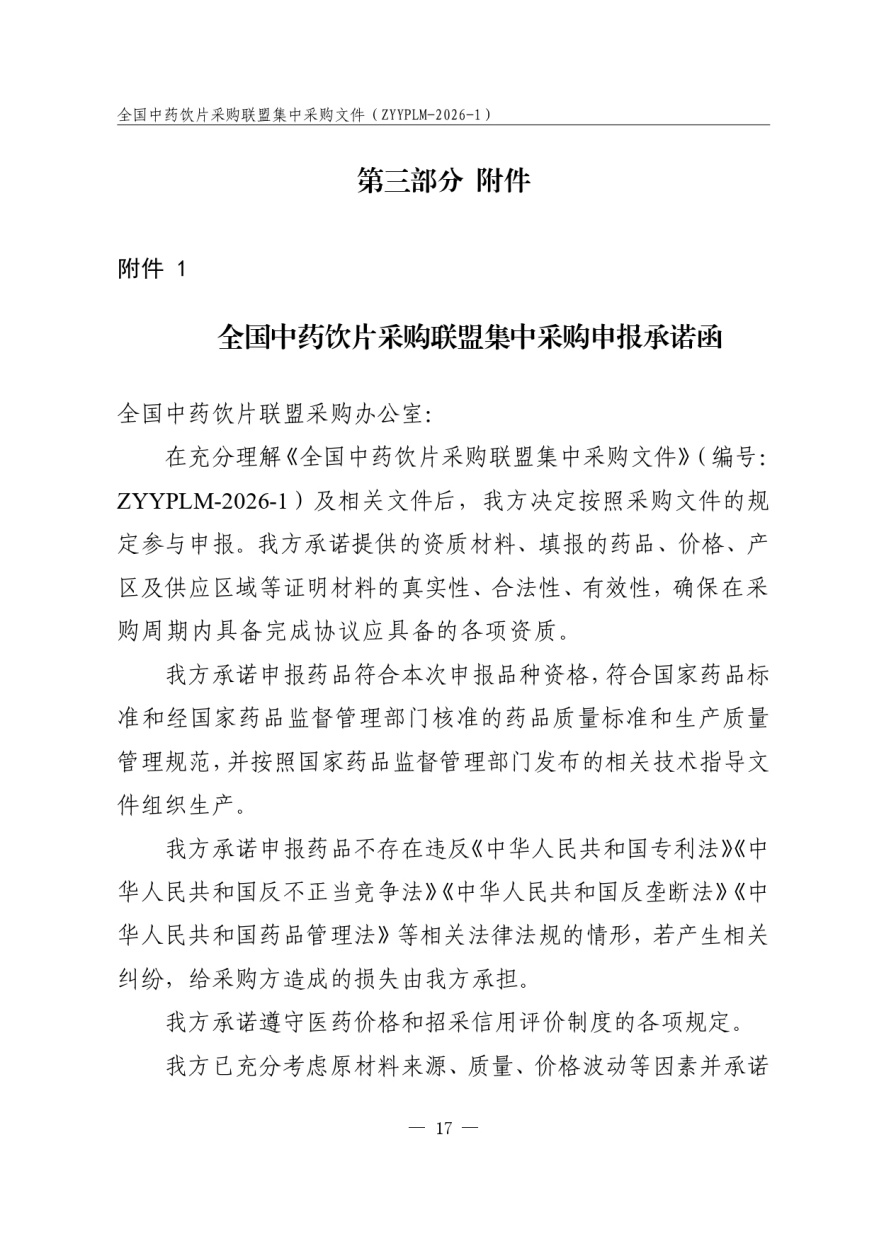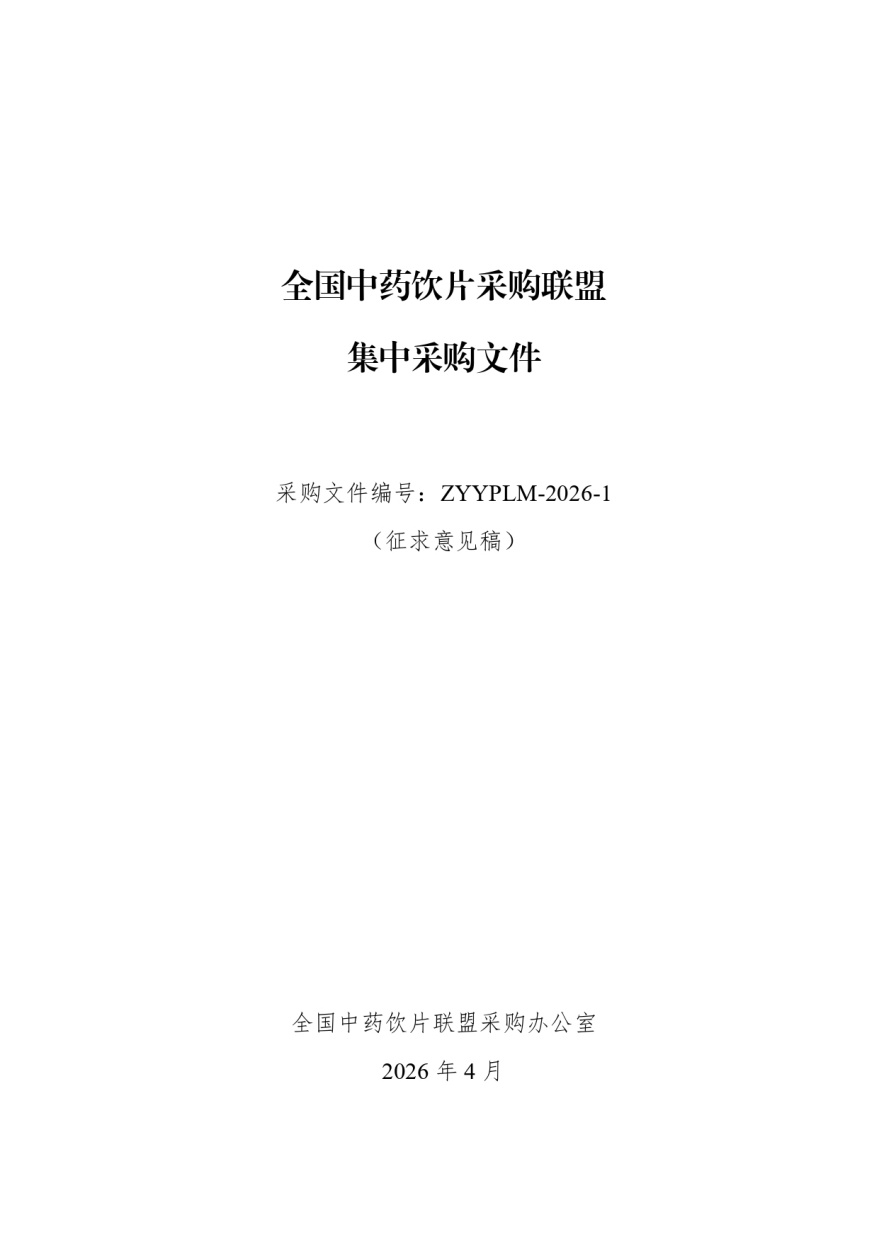 全国中药饮片采购联盟集中采购文件 采购文件编号:ZYYPLM-2026-1(征求意见稿)