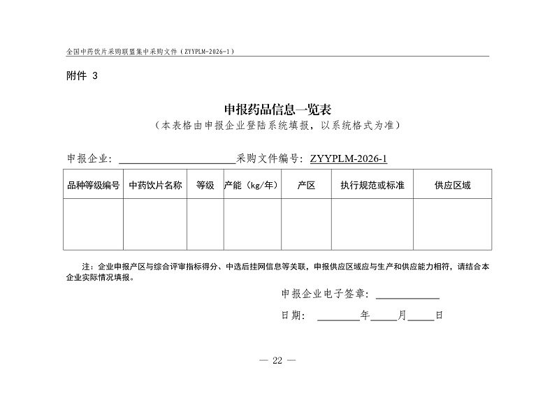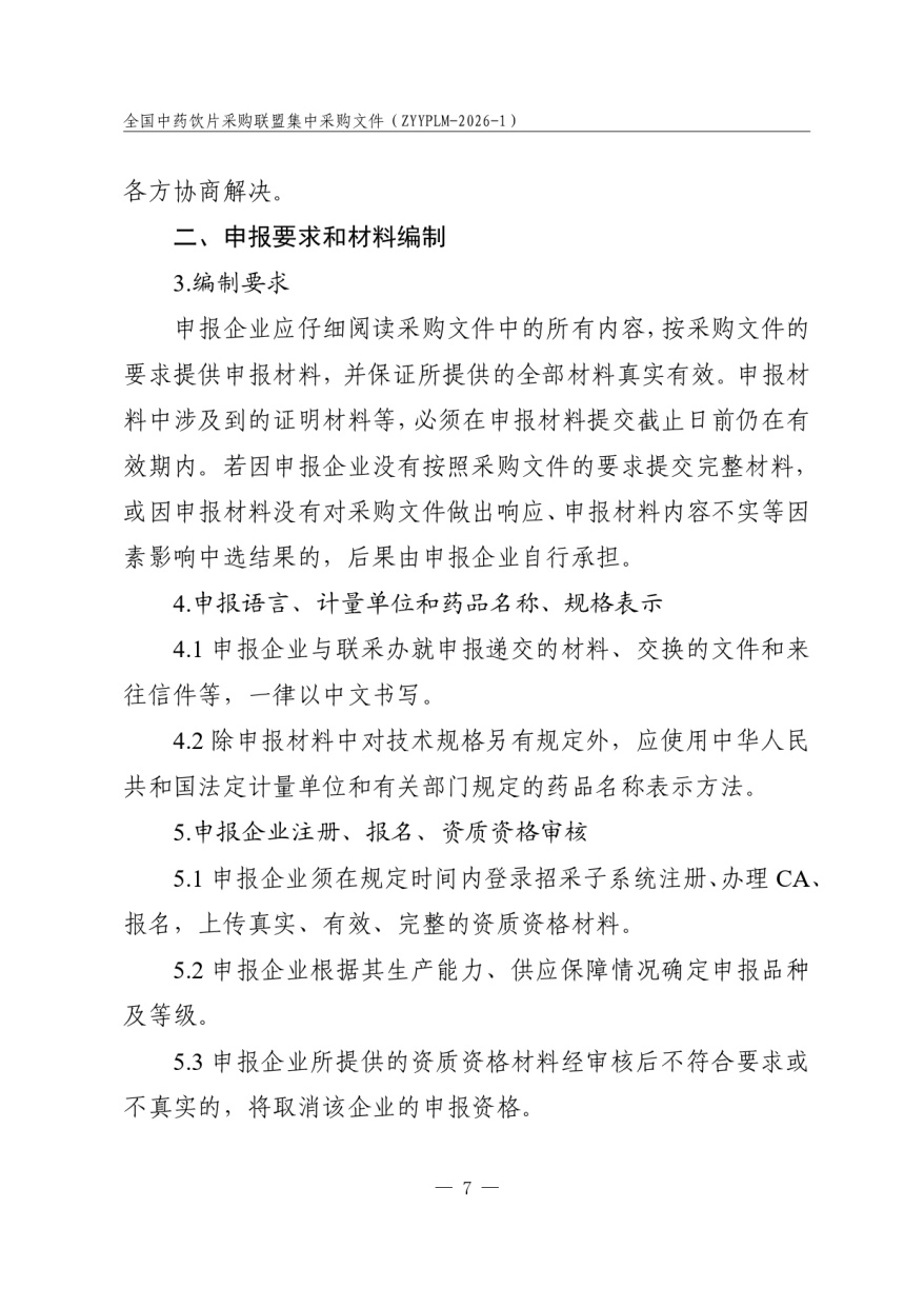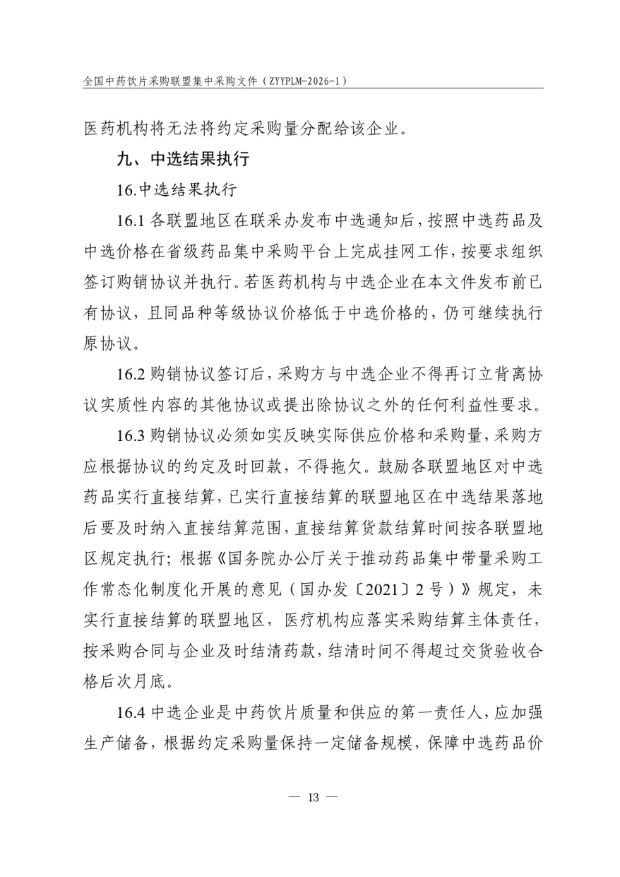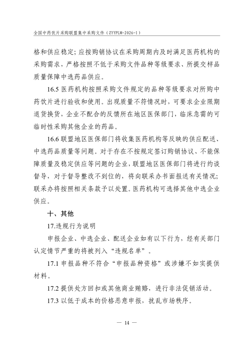 全国中药饮片采购联盟集中采购文件 采购文件编号:ZYYPLM-2026-1(征求意见稿)